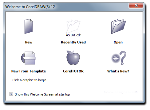 कोरेल ड्रा इनस्टॉल होते ही आपके कंप्यूटर के स्टार्ट मेनू के आल प्रोग्राम की सूची में जुड़ जाता है. इसे प्रारंभ करने के लिए सबसे पहले डेस्कटॉप स्क्रीन से स्टार्ट बटन पर क्लिक करके आल प्रोग्राम पर क्लिक करते है फिर आल प्रोग्राम में जाकर कोरेल ड्रा ग्राफ़िक सुइट 12 का एक मनु दिखाई देगा, उसके पॉप-ऑप मेनू से कोरेल ड्रा 12 पर क्लिक करते है. इस प्रकार हमारा प्रोग्राम प्रारंभ होने लगता है. ध्यान रहे इस प्रोग्राम को अपने कंप्यूटर पर चलाने के लिए कम – से – कम ड्यूल कोर प्रोसेसर और 2 जीबी रैम का होना जरुरी होता है.