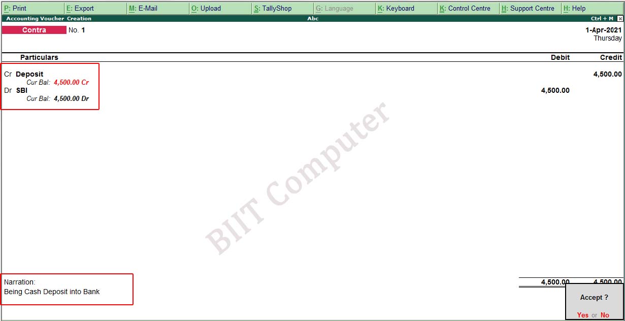 यहाँ Deposit और SBI दोनों के नाम से Ledger तैयार किया जाएगा और दोनों का Under बैंक अकाउंट होगा.